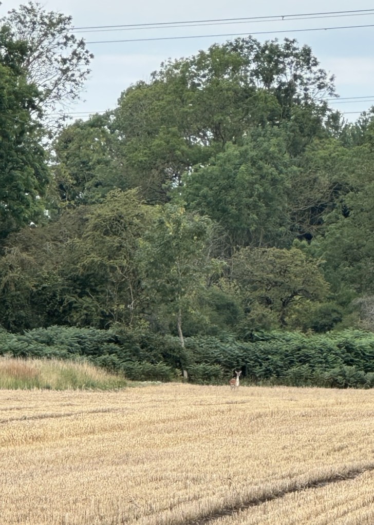 To see wildlife, you can’t let it see you. Running should make this harder, but on a road I sometimes feel invisible, part of the modern landscape like a car or bike. It’s only when I stand still that I become a human again. Deer a hundred metres away will ignore me while I’m running but, as soon as I stop, they will all turn their heads and stare. No longer a moving target, I am now a threat.