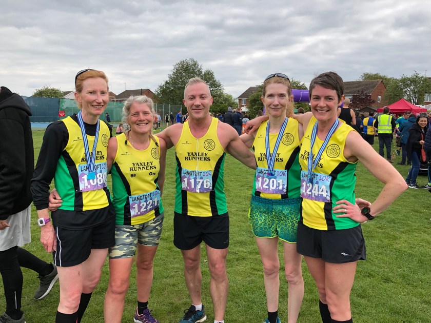But… it turns out I could get another personal best. And, um, not just one. In May, three weeks after Boston marathon, I knocked over a minute off my 10k time at Langtoft Road Run. I love this race. Flat country lanes, wisteria clad cottages, and the weather was ideal: cloudy and cool. My legs felt rested and the pace (6:45 minutes a mile) felt just the right side of too hard. Nothing really hurt until the last mile and then there was NO WAY I was slowing down and letting it go. A pb! My first personal best since joining Yaxley Runners in 2016.