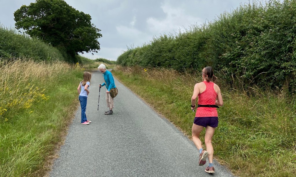 After the first hill there is a narrow footpath section where runners are forced to run in single file for half a mile. In any other race I would be frustrated to be stuck in a queue early on, so it felt good to remember all the times I’ve felt like that before and realise that this time I didn’t care. At mile four we settled in behind a trio of runners and, instead of wondering whether we could overtake them, I wondered whether we could keep them in front of us for the rest of the race.